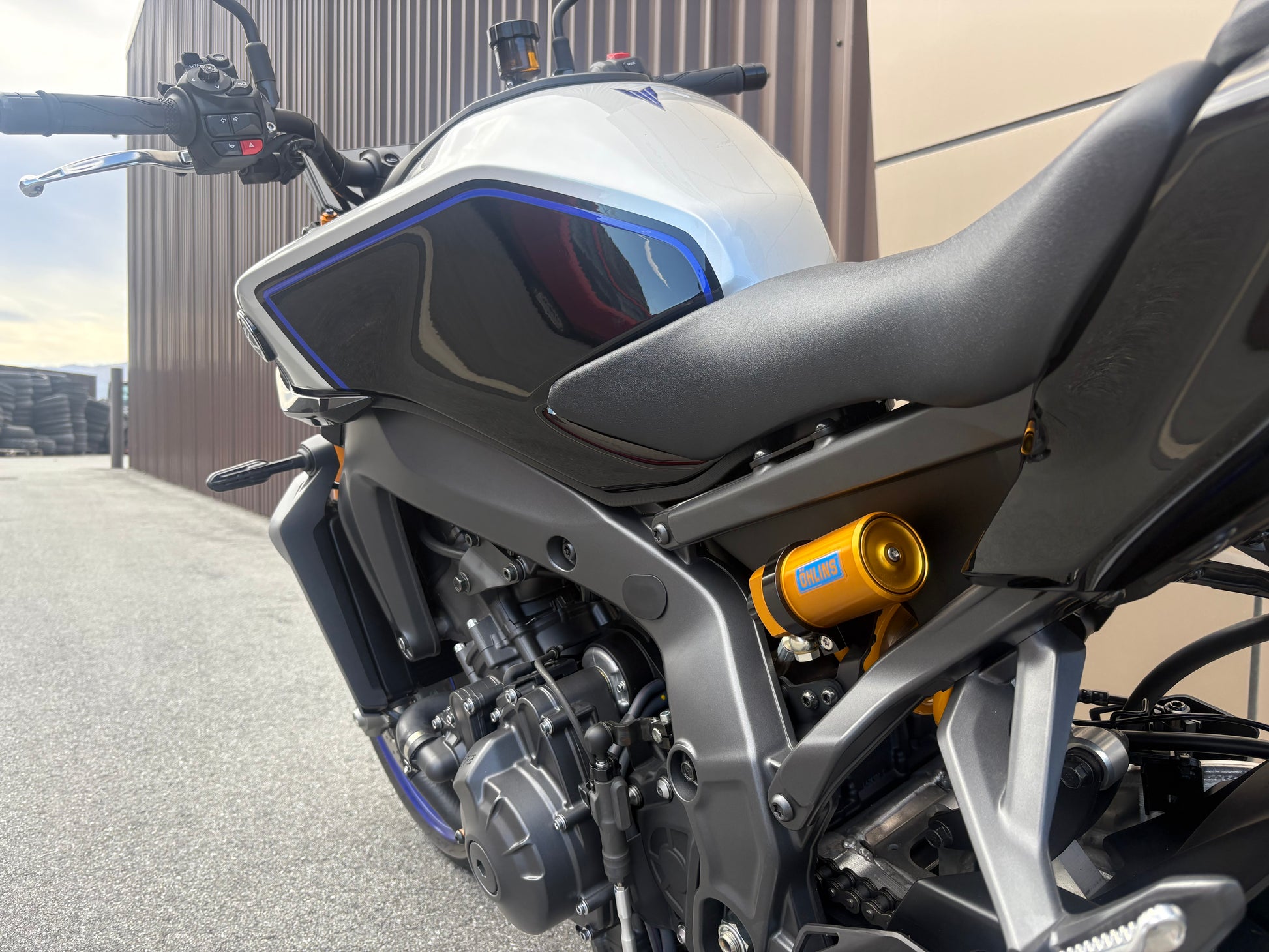 Experience the exhilarating torque of the 890cc CP3 engine like never before, with enhanced track-focused rider modes customisable to suit different circuits or conditions. The SP-exclusive DLC-coated 41mm KYB gold front forks are paired with the fully adjustable Öhlins rear shock for the most refined Hyper Naked riding experience yet.